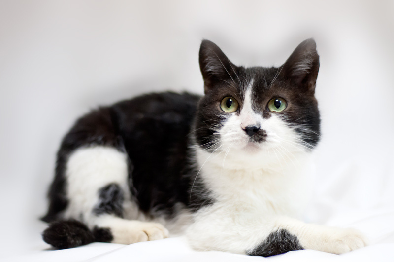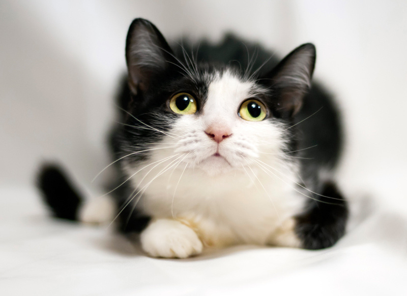 4.Черно-белый с пятнышком под носом- это Соломон. Кот милейший, добрый, интеллигентный, в нем есть внутренняя мягкость. При этом он любитель повеселиться, побегать, погонять мышь. Соломончик-просто мечта для культурной семьи.