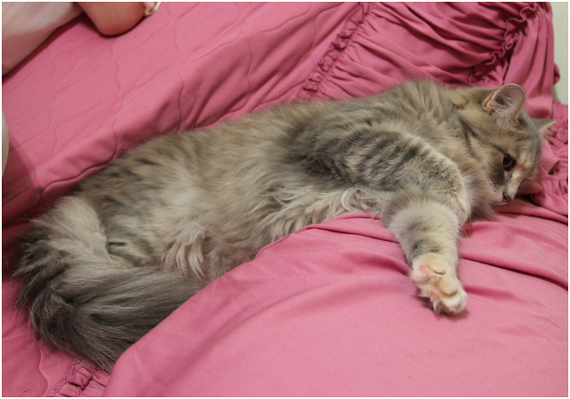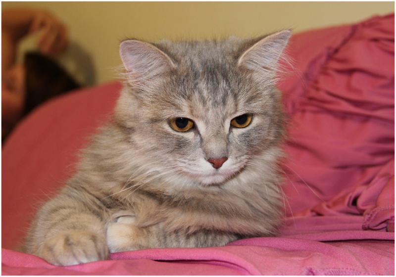Ей нравится сидеть рядом, играть с дразнилкой, лежать на у кого-то на коленках или на спине - ей просто важно быть рядом с человеком!