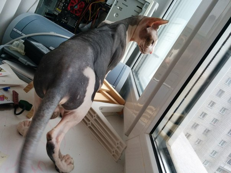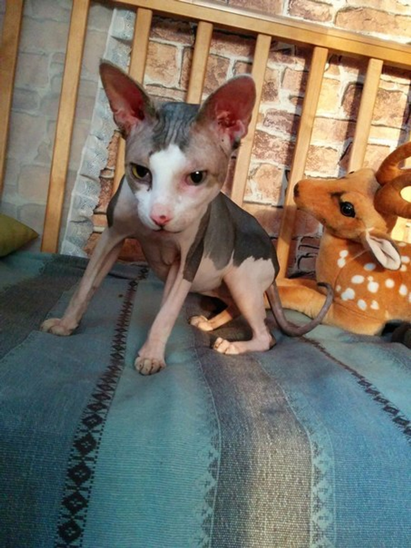 Фенотипичный канадский сфинкс. Был найден 13 апреля около дома по адресу ул. Орджоникидзе 35.