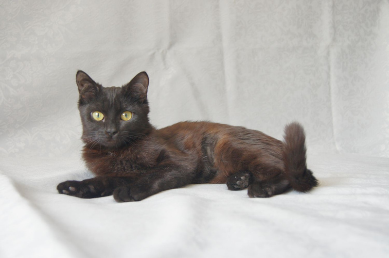 В поисках семьи очень ласковая юная кошечка Майя. Возраст 5 месяцев, стерилизована, привита, знает лоток. Умная, любознательная и грациозная кошечка. Майя - черная пантерка с шелковистой блестящей шерсткой, игривая, добрая, милая. Обожает нежиться и мурлыкать, устроившись у вас на коленях, засыпает рядом с любимым хозяином.