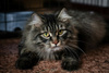 Тиша молод, здоров, активен, игрив и к тому же-настоящий брутал. Возраст всего около 2-х лет. Его гордый нрав не позволяет ему всегда быть ласковым, но если соскучиться, обязательно споет вам сладкую песенку. Несмотря на свой грозный вид, мурлыкает тоненьким голоском, характерным больше для котят, и эта особенность придает ему еще больше очарования. Безумно гиперактивное создание, всего за несколько минут сумеет разведать обстановку в доме и изучить все потаенные места, а после того, как устанет играть, с удовольствием, понаблюдает за тем, что твориться за окном. Когти точит об когтеточку, в пакостях с диванами замечен не был, но кто знает, что у него на уме:) Лоток сумеет разыскать в любое время дня и ночи. Кушает сухой Проплан деликат. С другими животными не прочь порезвиться, но т.к Тиша имеет бурный нрав, лучше чтобы был единственным любимцем в семье.