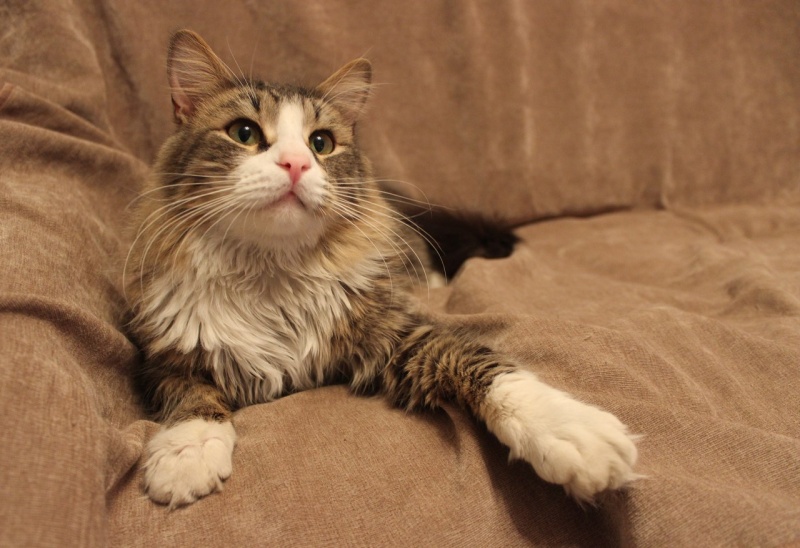Мартыну всего 2 года, это невероятно ласковый, но в то же время, абсолютно, не навязчивый котофей. С легкостью сможет замурчать кого-угодно и подарит каждому порцию своей любви. Любит понежиться в своем домике, но будет не прочь и поваляться с вами на диване. Умеет встречать с работы, греть место на кресло, опознавать мышь, находить латок, распознавать и выпрашивать кулинарные изыски, а главное-любить всем сердцем и успокаивать сладкими песнями.