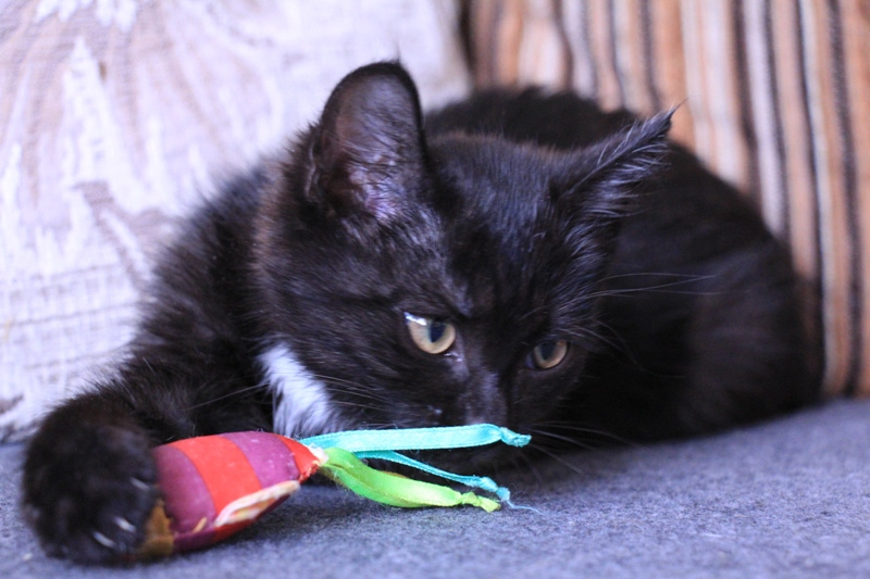 Васе всего 2.5-3 мес, она милейшее создание с большими кукольными глазами. Играть пока не умеет, учится, никогда не видела раньше игрушек. Очень контактная и добрая девочка.