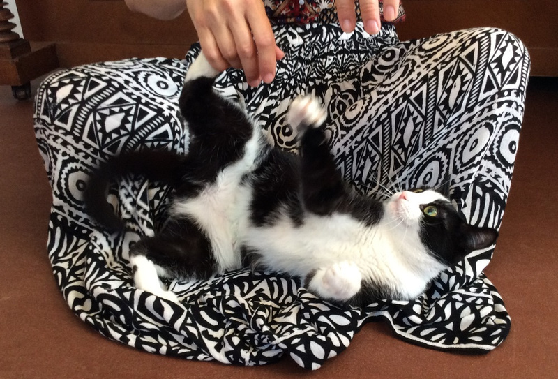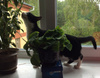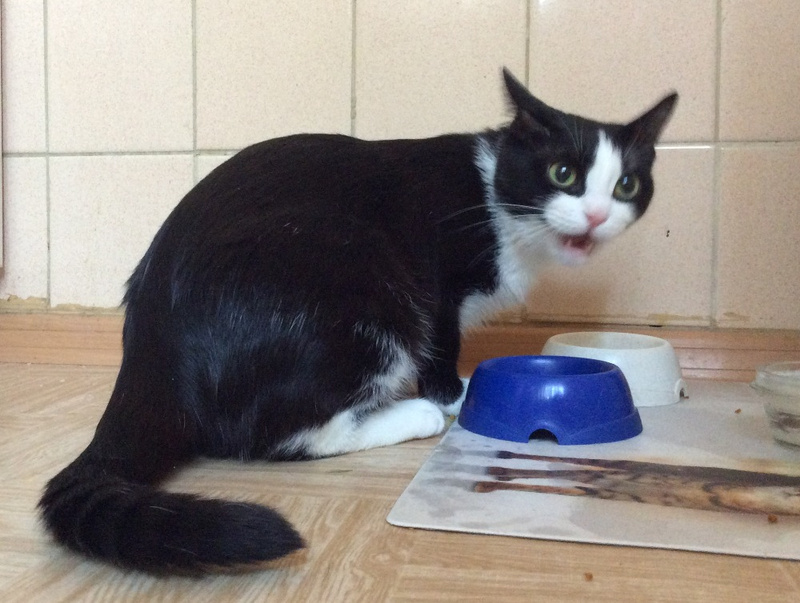 В быту показала себя очень адекватно. Горшок признала, ведет себя спокойно, сухой ком ест очень охотно, пока присутствует синдром голодной прежней жизни, но без нахальства.
