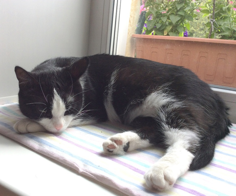 Пока думали, что делать, у нее началась течка, пришли коты, пришлось срочно изымать с улицы, везти к врачам, стерилизовать, а то сиятельных особ кошачьего племени в скорости прибавилось бы.