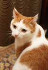 Бело рыжий кот Руди, 6 лет. Мальчик очень воспитанный, лоток на отлично. Кастрирован. Отлично ладит с людьми, но не очень любит компанию других кошек. Рудику очень сложно жить в большой компании, он не очень доверяет людям, но когда познакомится, то становится ласковым, приветливым котиком.