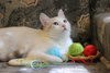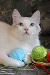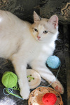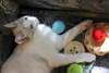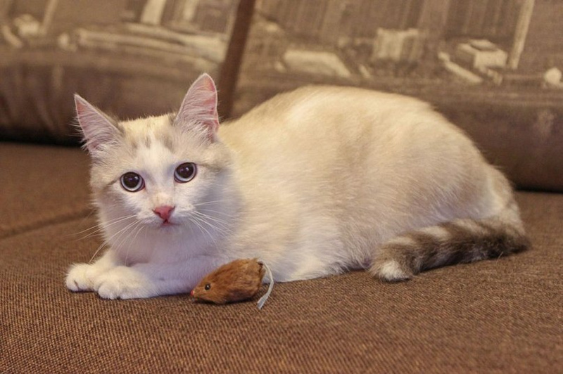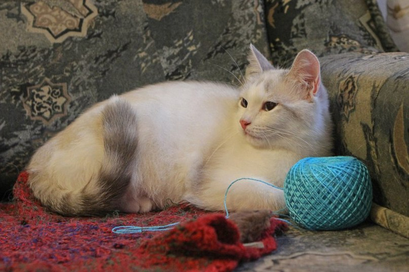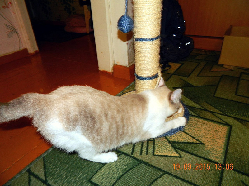 Любит гонять всевозможные игрушки, крутить хвосты кошке и собачке, любопытничать и принимать участие в их жизни.