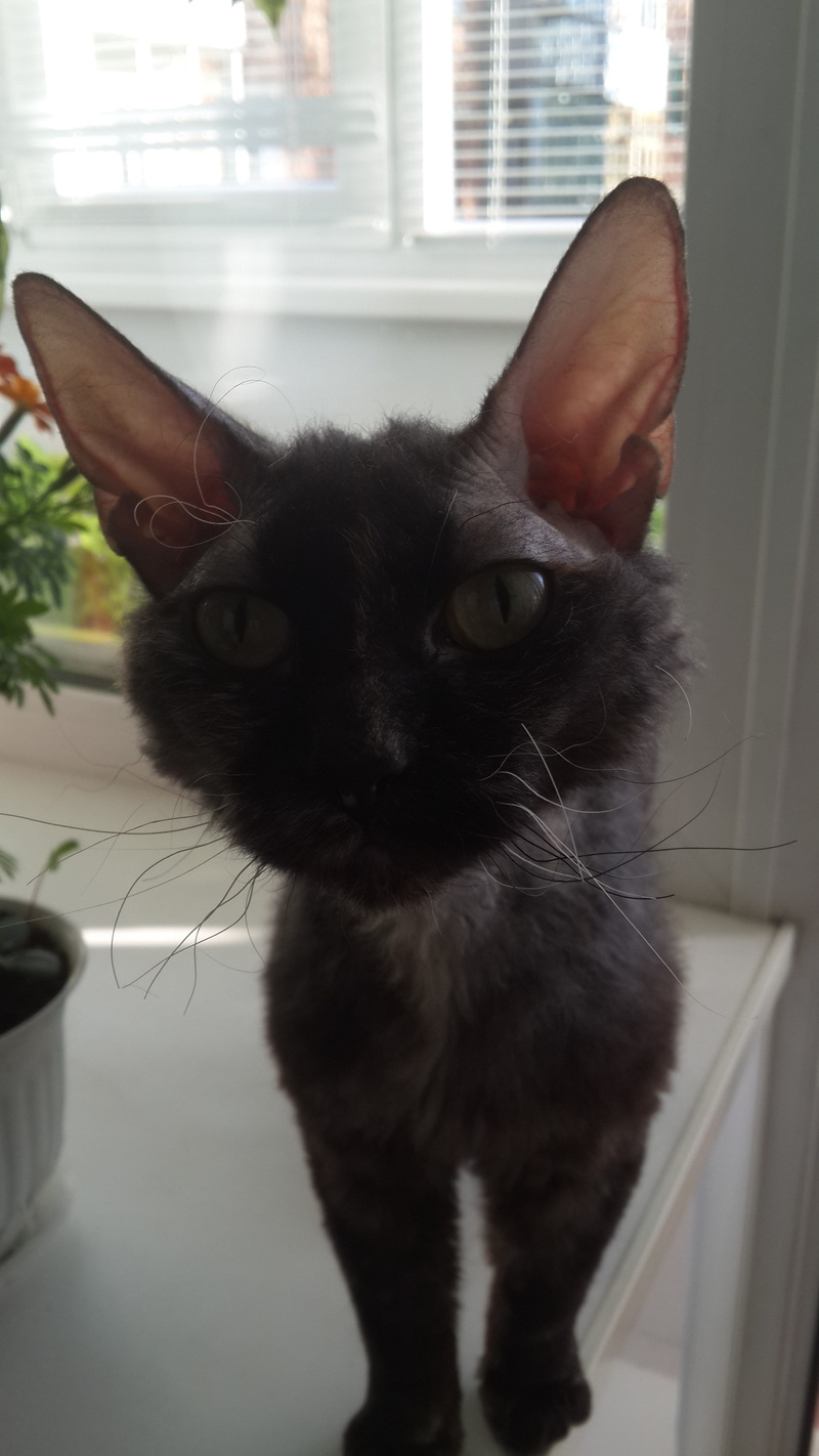 В подъезде нашли кошечку, примерно 6-8 месяцев. Отдам в добрые руки. В вет.клинике сказали, что это сфинкс, только немного лохматый. На хвосте кисточка)) Лоток знает на 5 с плюсом! Кушает все, что дают) Громко мурчит))
