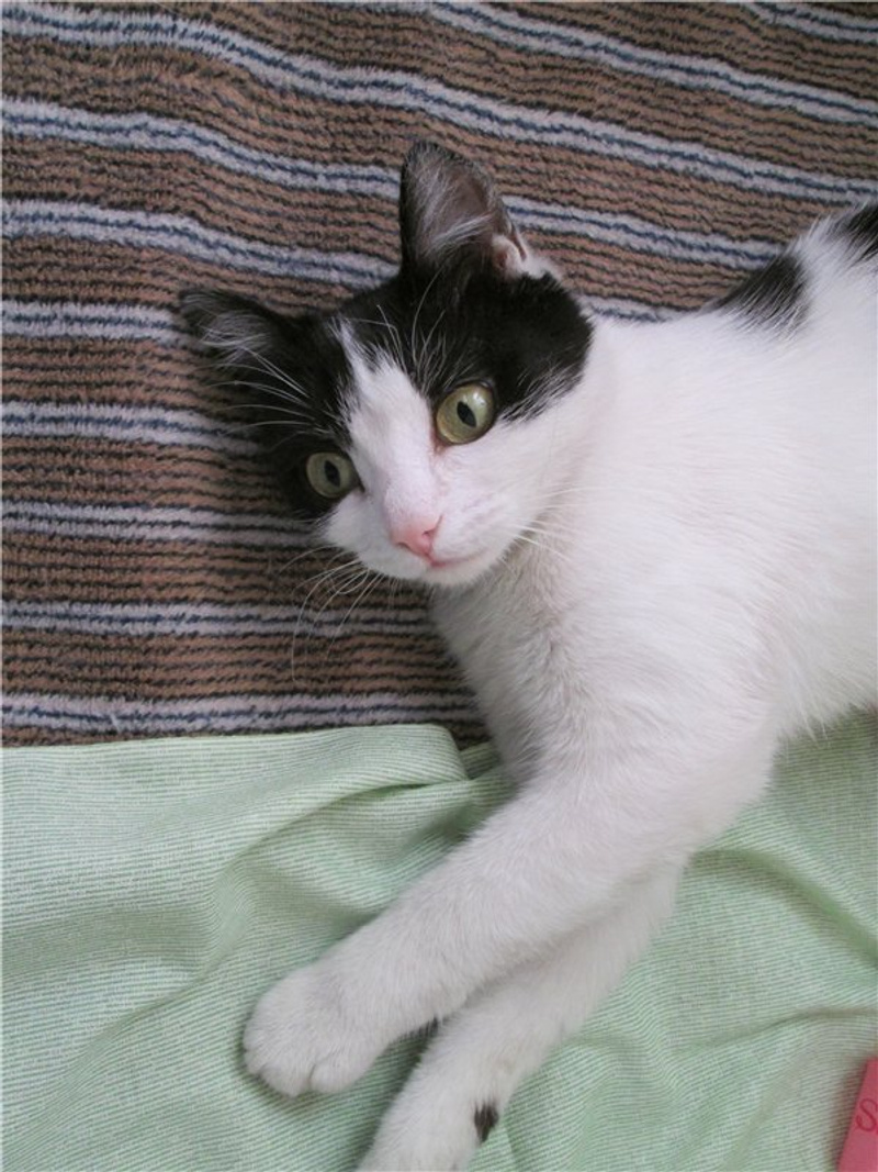 Молодая черно-белая кошка-подобрашка, спасена из подъезда. Стерилизована, привита. Очень активная и игривая. Только в добрые и ответственные руки!