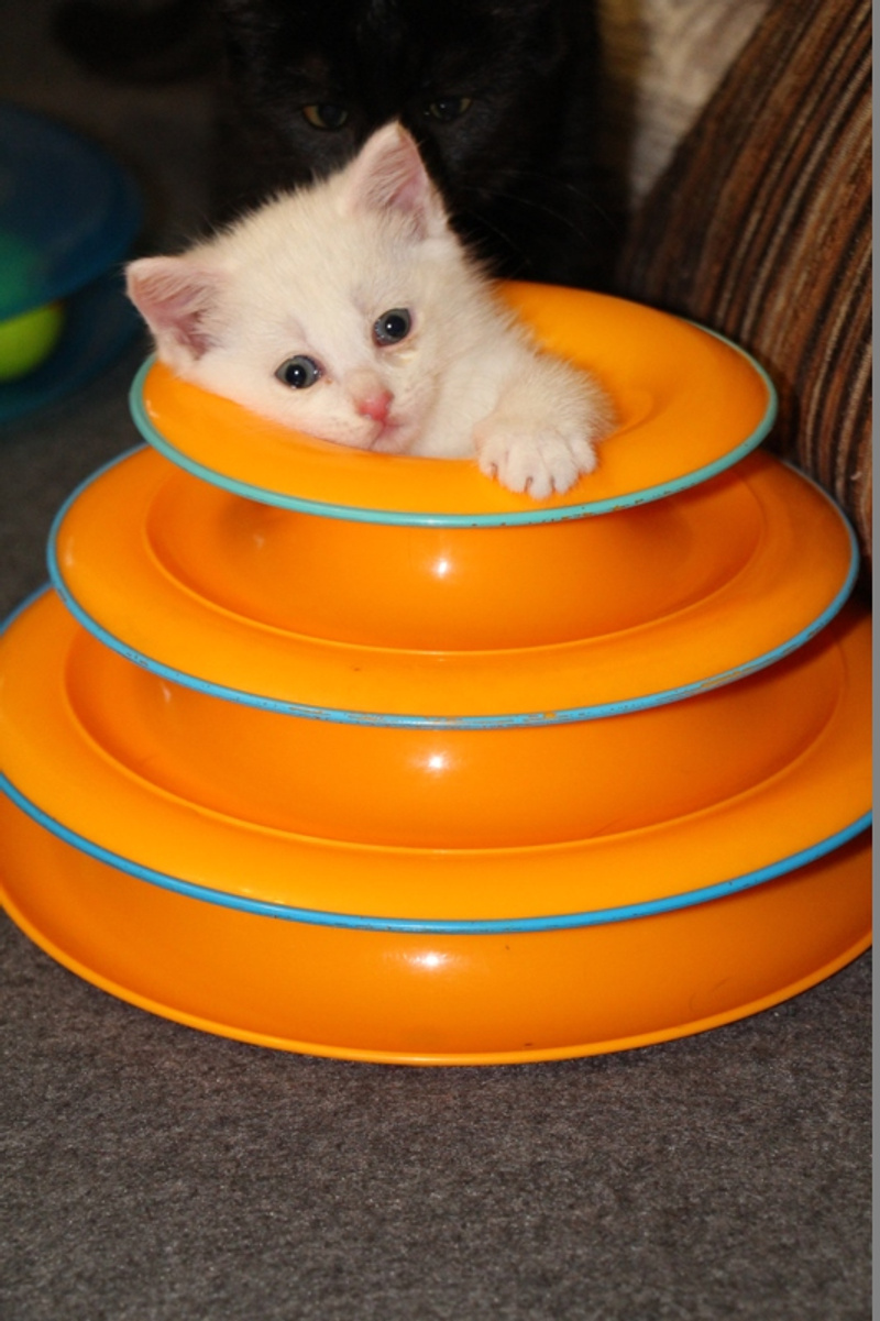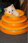 Ми-ми совсем кроха, но уже такая самостоятельная), она ловко пользуется лоточком, она умеет играть игрушками, очень любознательная, растет и познает мир.