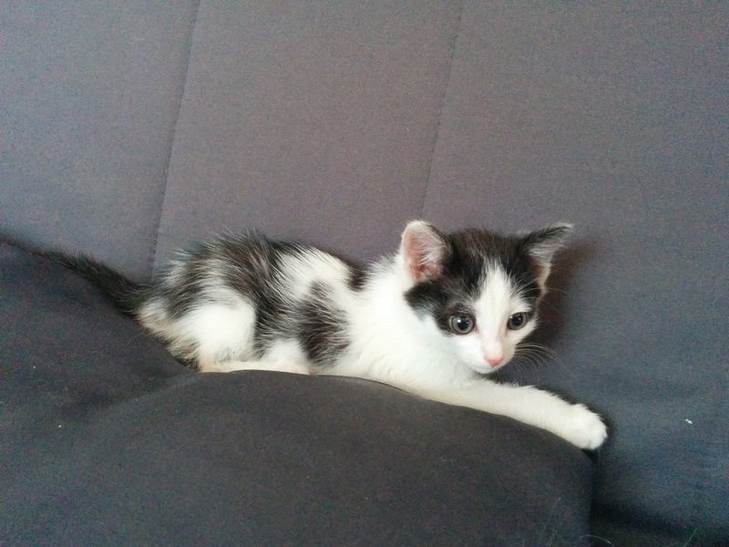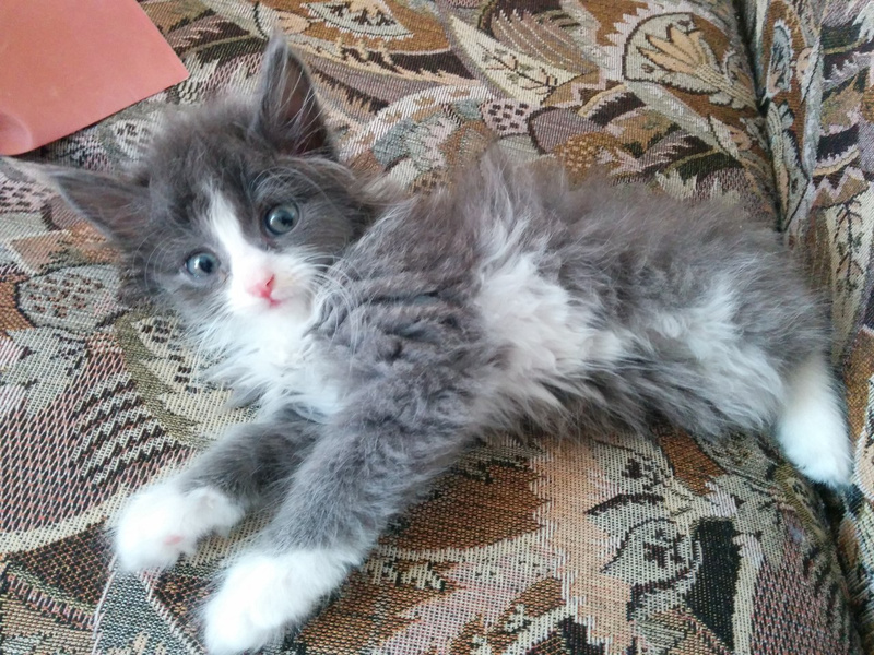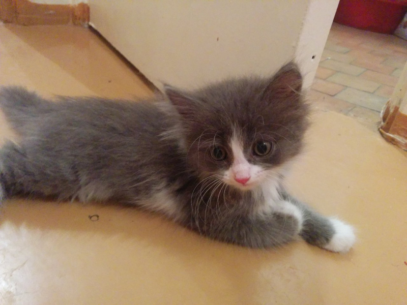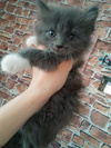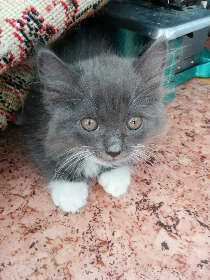 Софе 2 месяца, её вместе с братом и сестрой оставили в коробке во дворе, вынесли чистенькими и ухоженными прямо от мамочки. у Софы от пережитого осталась забавная привычка, она посасывает пальцы рук, поэтому ей особенно важен тактильный контакт с человеком. Она лезет на руки за детскими нежностями)))) Сестренка Софы - Лупа, такая же серенькая и пушистая.