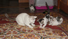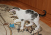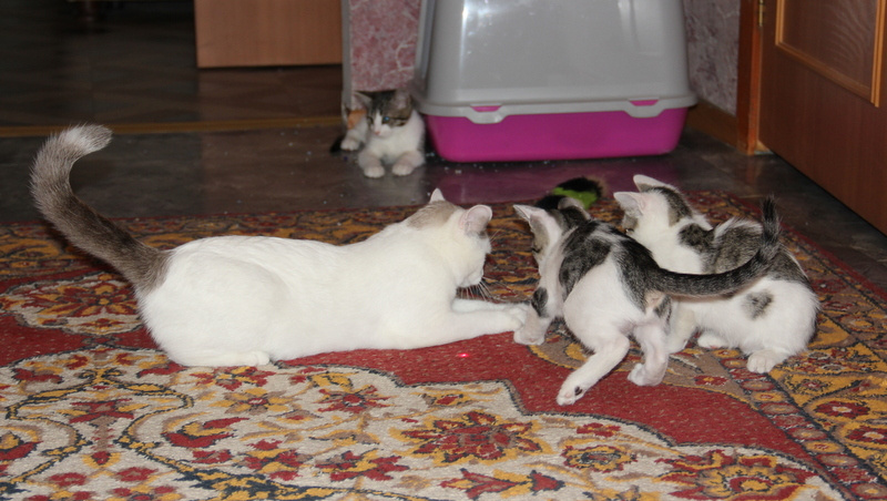 Сразу начали кушать паштетик для котят, начинаем приучать их к сухому корму. На удивление и к нашей гордости тут же дружным строем пошли по всем делам в лоток.