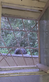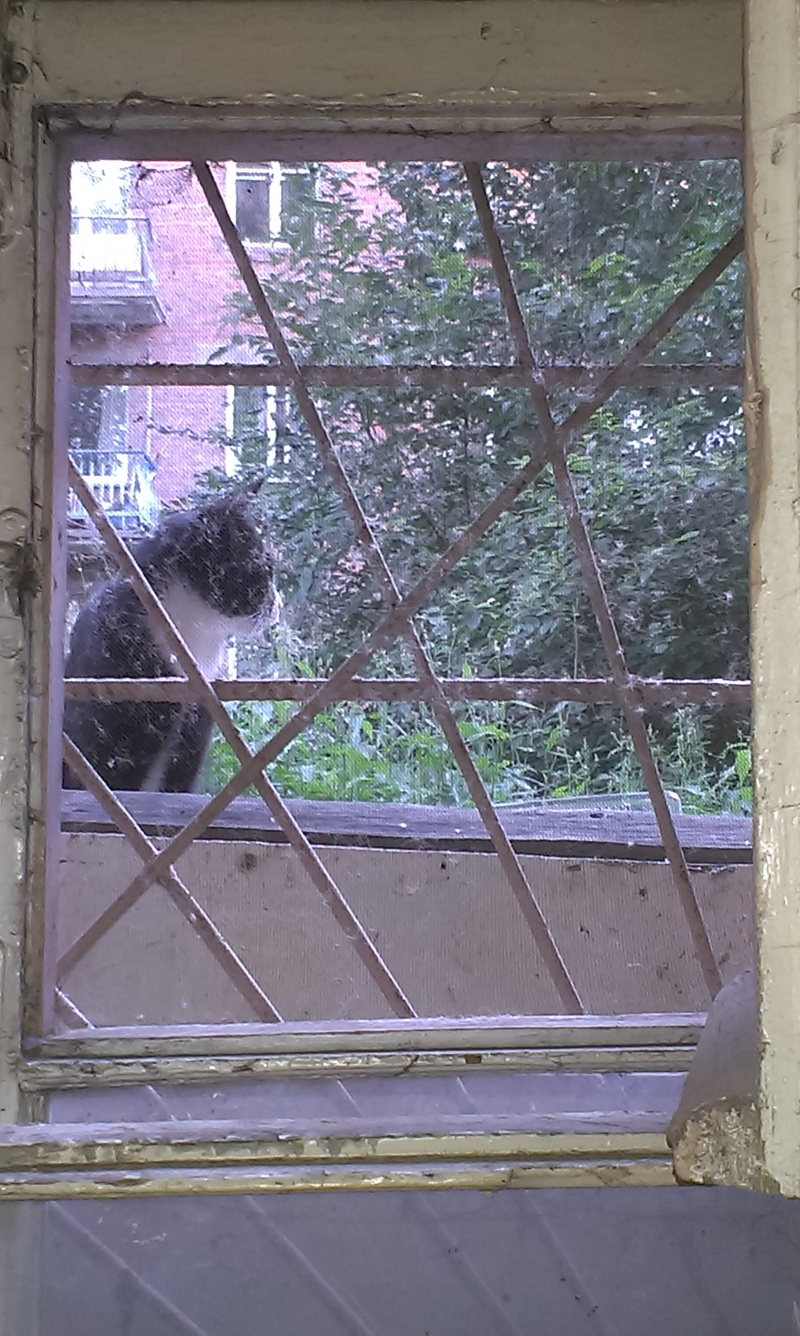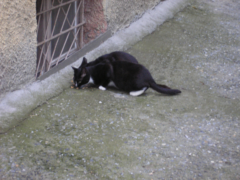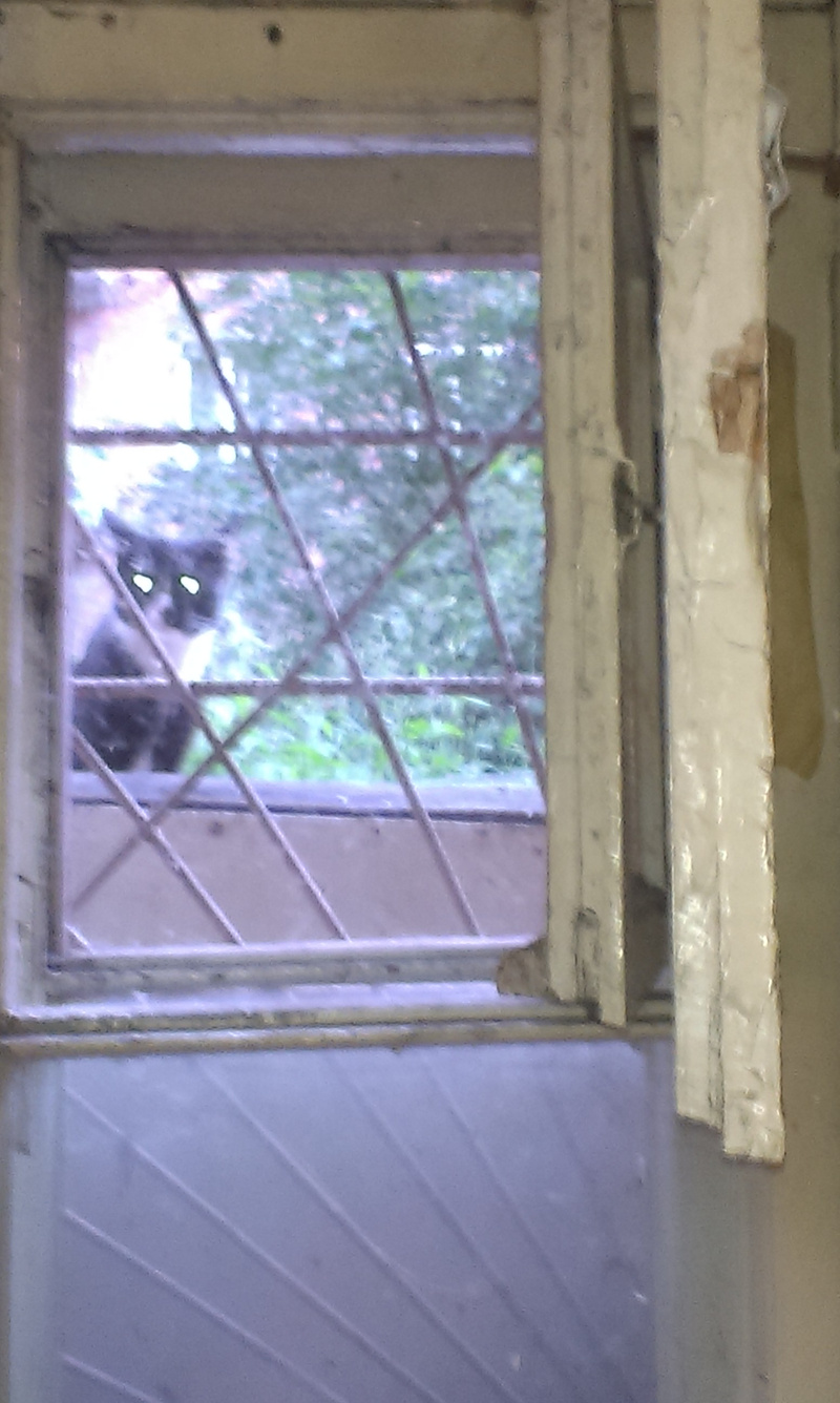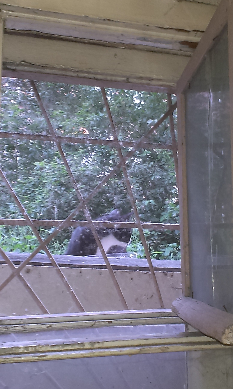 Приходит почти как по расписанию, иногда раньше, иногда позже, заглядывает в окно. Выносишь еду - отбегает метров на 10 - уходишь - возвращается есть, при этом жизнь тяжёлая, по сторонам всё время озирается.
