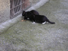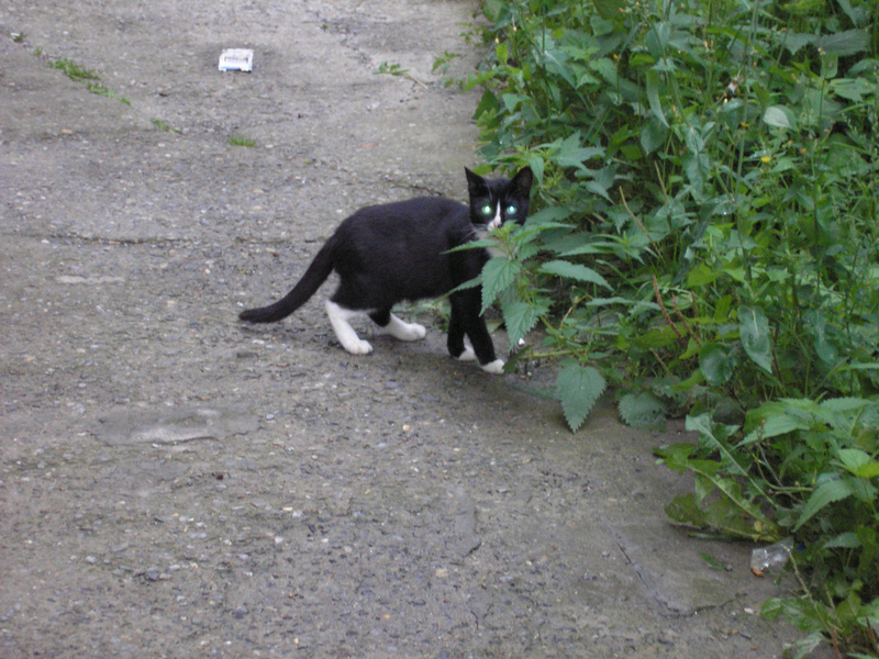 Прибился к офису то ли кот, то ли кошка, пол не определял, но вот кодовая кличка Корефан к нему прилипла. Чёрненький, с белой грудкой.