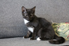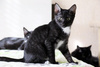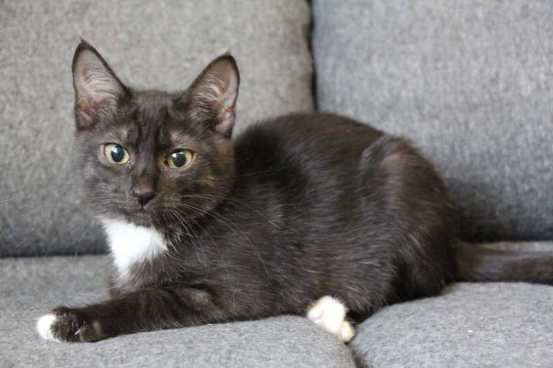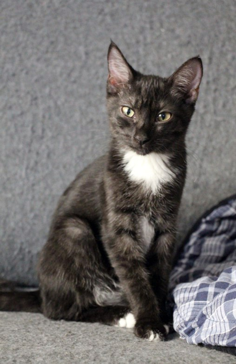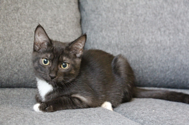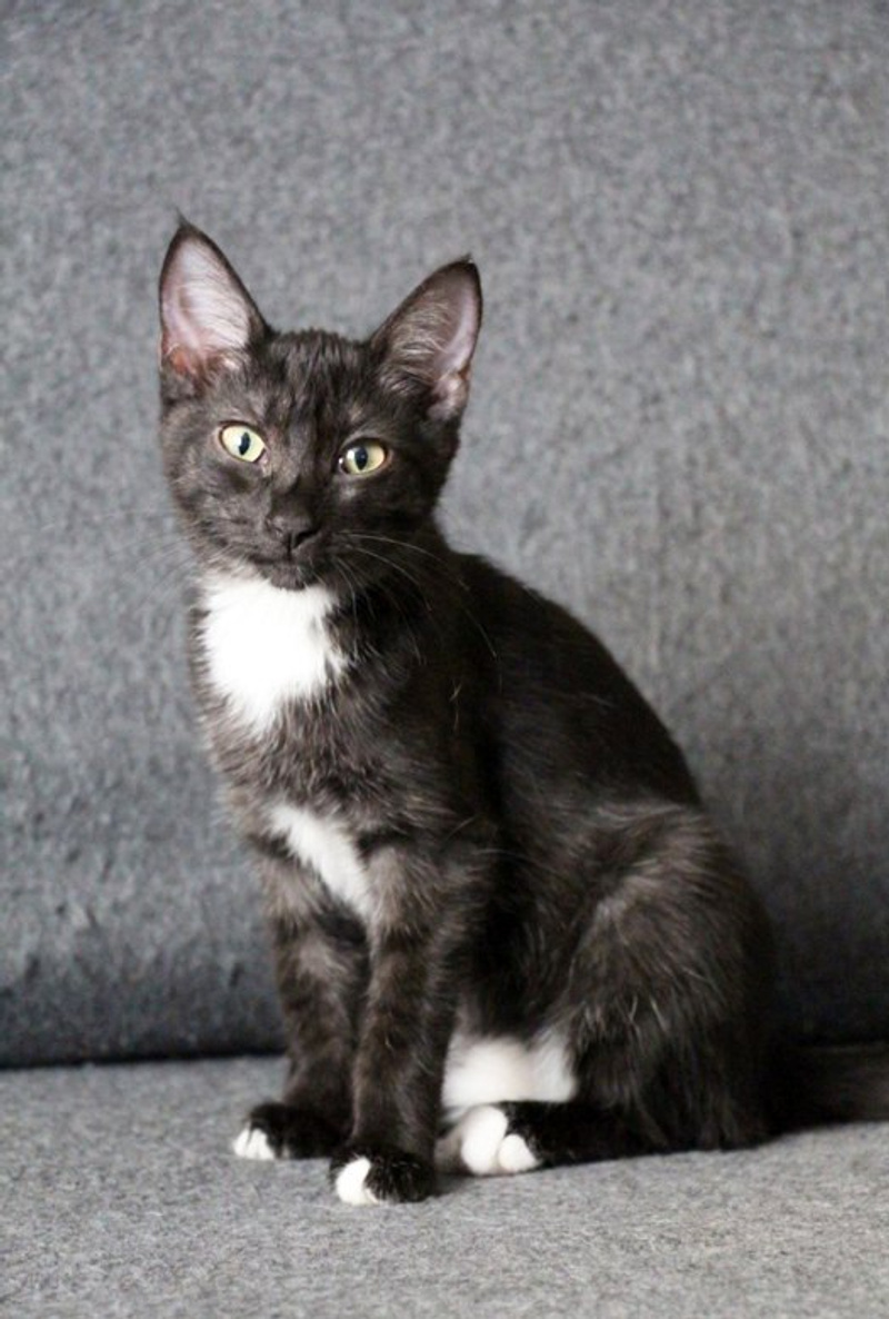 Приучена к лоточку с наполнителем, питается РК для котят. Дружит с другими кошками, легко находит с ними общий язык, дружелюбная.