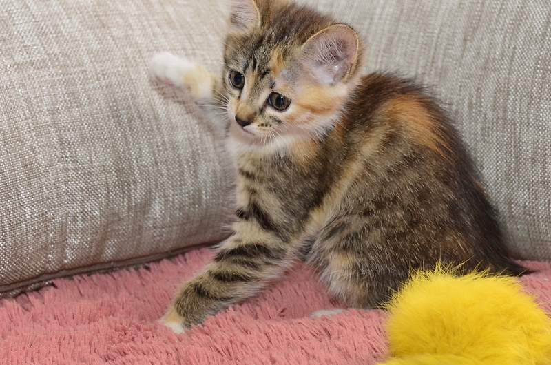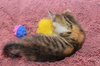 Игривая до невозможности! Скачет! Борется с мышками и шариками! Утром трогает меня за нос своей малипусечной лапкой!