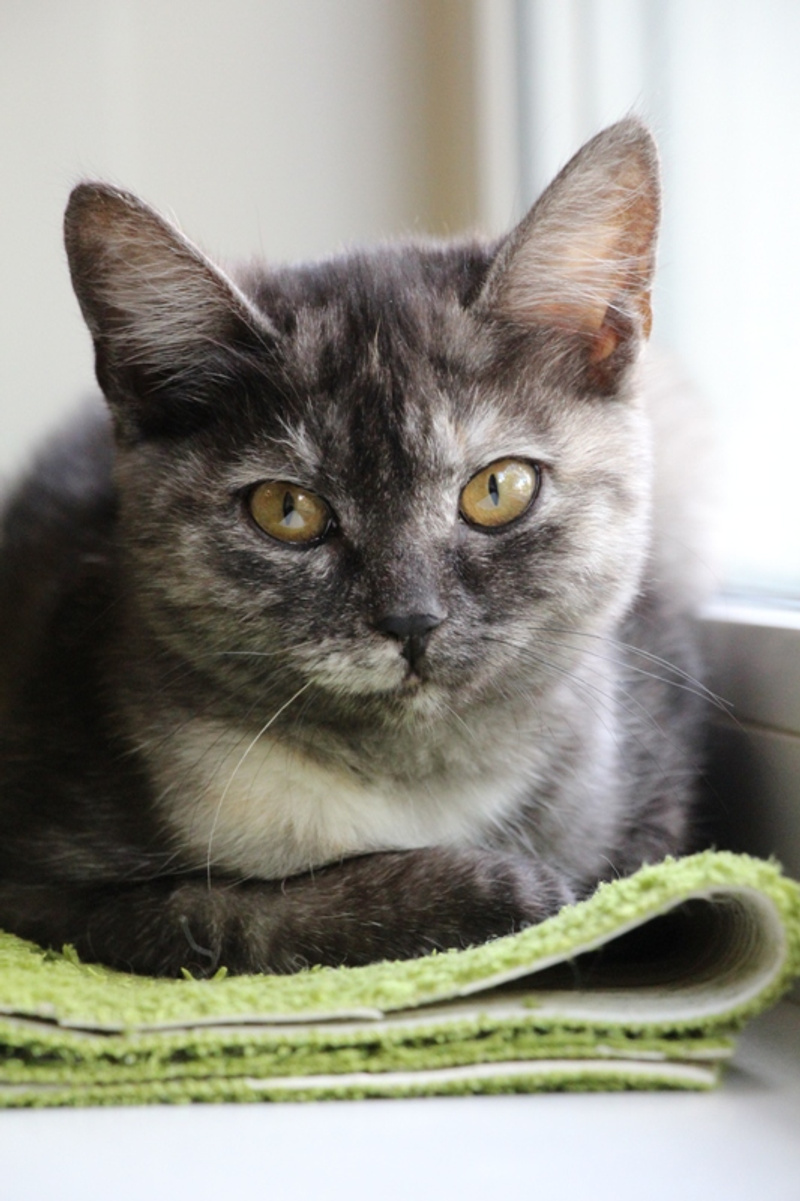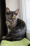 Возраст малышки около 4 мес. Обожает играть игрушками, очень задорная, активная, маленькая попрыгушка. Не прочь посидеть на ручках, сладко потягивая лапочками. Любит, когда ее гладят, чешут за ушком, за это будет благодарно петь свои кошачьи песенки.