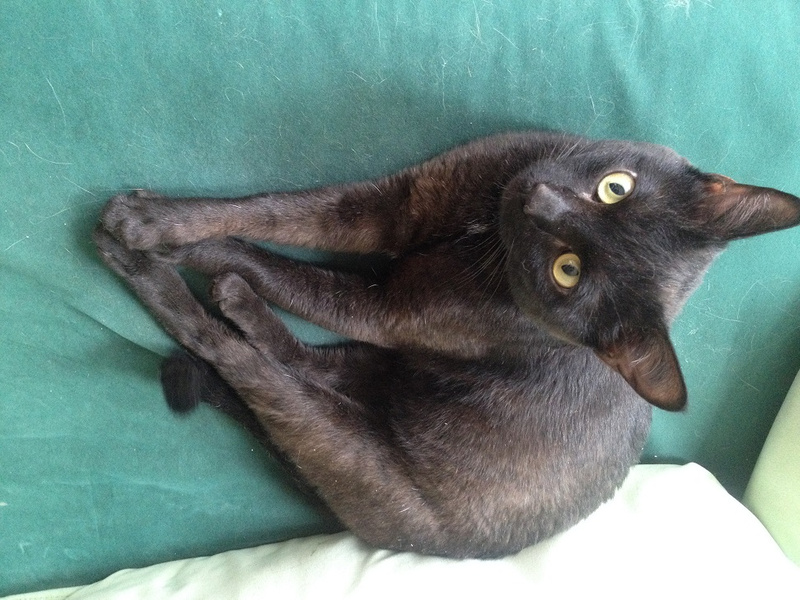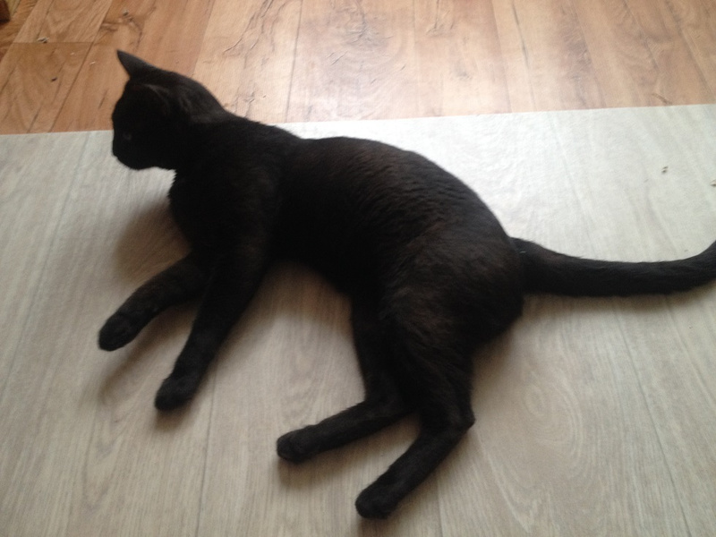 P.S. Котика выставили соседи, за драку с кошкой. Он был подобран нами и временно пригрет на балконе. Сейчас оккупировал отдельную комнату, т.к. обижает моих котов, террорист. Рассмотрела его получше-кошак не просто черный, а черный дым! Кстати, котик обработан инспектором и проглистогонен. Ушки чистые, глазки ясные, над качеством шерстки работаем)