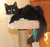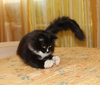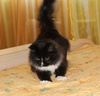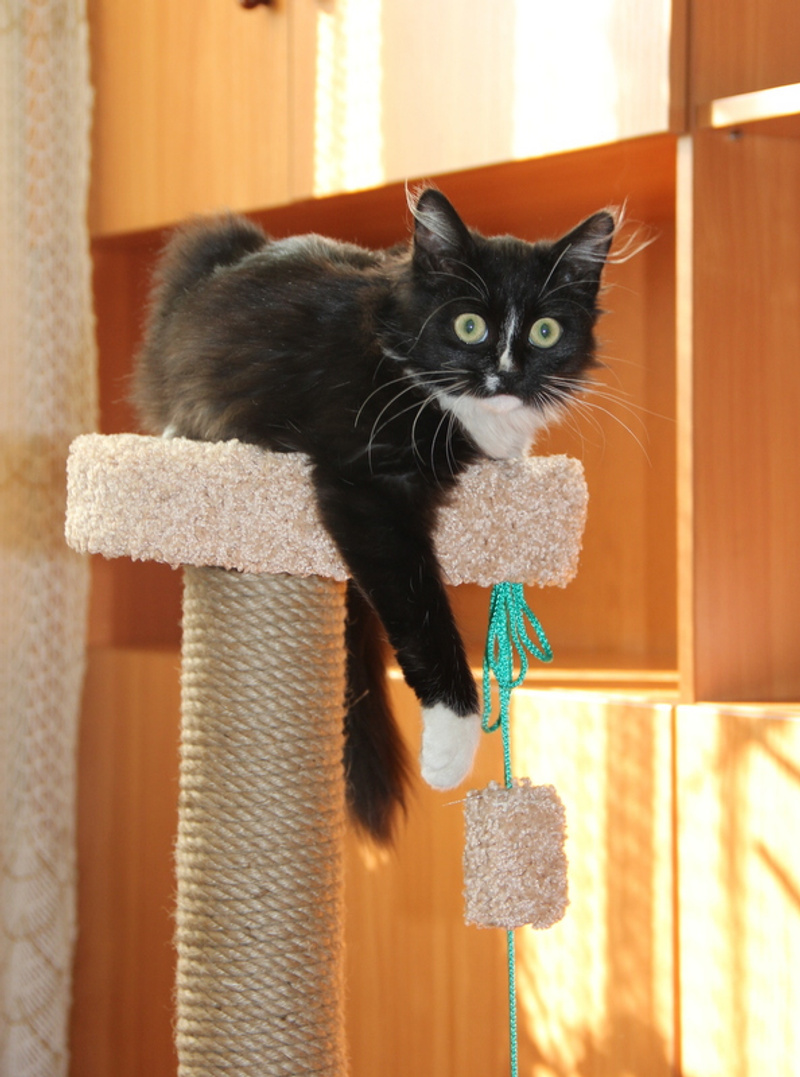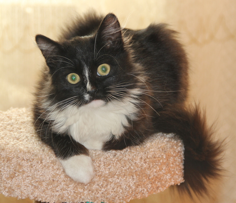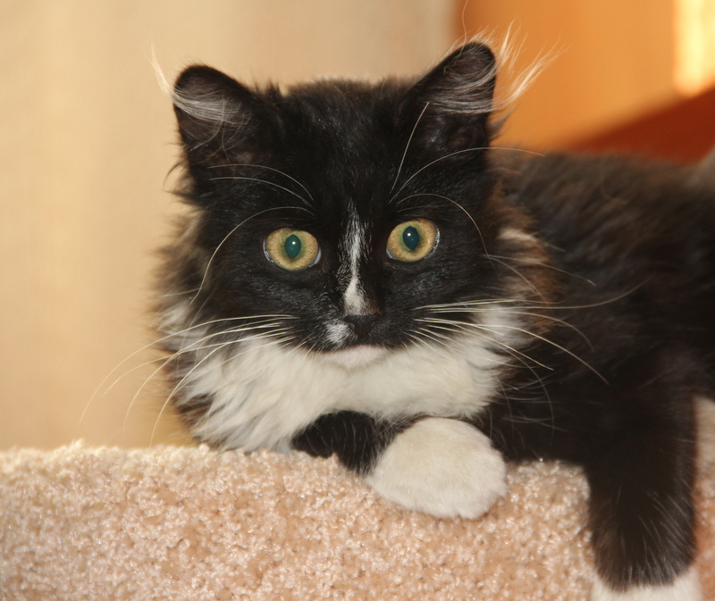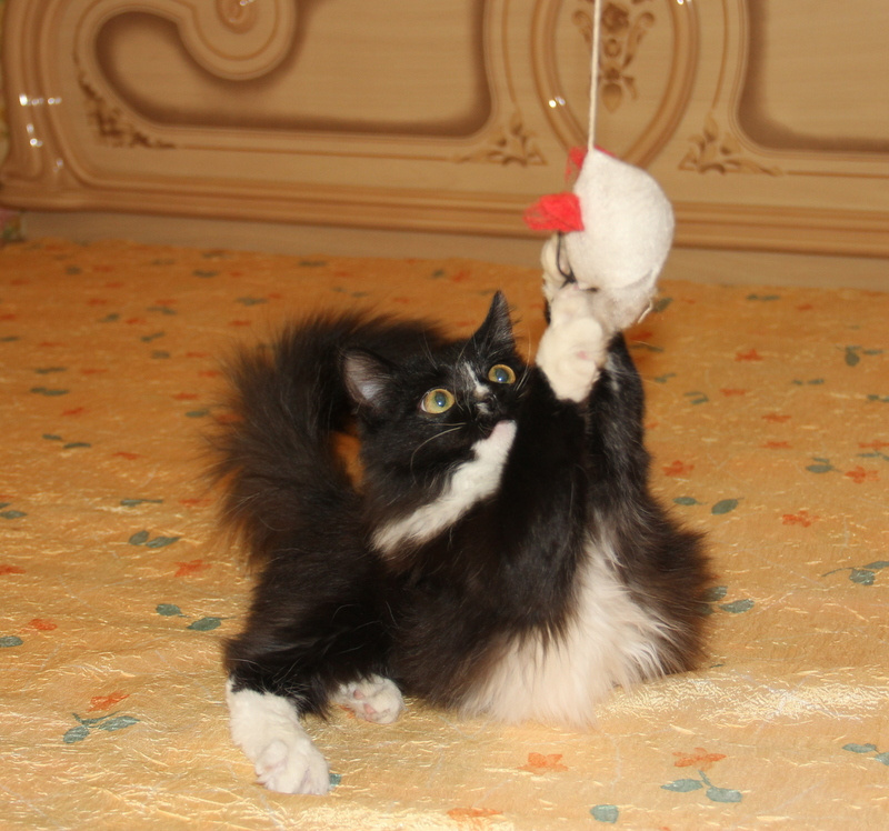 Невероятно ласковый ребёнок, на ручки заберётся, песенку мурчит, в глаза заглядывает. Обожает поиграть, побегать, а потом завалиться спать под бочок к хозяину.