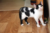 Знакомьтесь,это Галчонок! Возраст 3 мес, яркая, стройная и очень красивая, как чубарая мини-лошадка , беленькая в темных пятнышках по всему тельцу. Кошечка организованная, все делает планомерно и правильно, а закончив все свои важные делишки, бежит посидеть на ручках, поласкаться. Галчонок очень хорошая и дружелюбная, во всем аккуратная и чистоплотная.