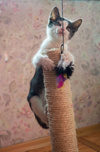 Банди очень любит играть в активные игры, может представить себя «воротником», чтобы посидеть у мамо-пап на шее и помурчать песенки)))