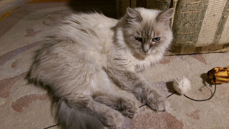 В сентябре подобрали кошечку фенотип невской маскарадной, окрас блю-колор-поинт. Глаза небесно-голубого цвета!