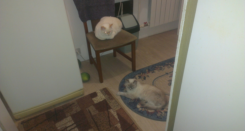 С удовольствием Соню оставили бы себе, но наша домашняя кошка Бусинка (сиамские корни) задает Соне жару. Мне приходится гладить Соню на кухне, когда Бусинка спит и не видит. Если Бусинка случайно увидела на моих руках Соню - весь следующий день Соня проведет под кроватью, не поев, не сходив в туалет, пока я не вернусь с работы, а Бусинка будет ее сторожить, рычать, мычать, ворчать и не выпускать из-под кровати. Соня в силу своей скромности и интеллигентности не хочет противостоять этому сиамскому хамству.