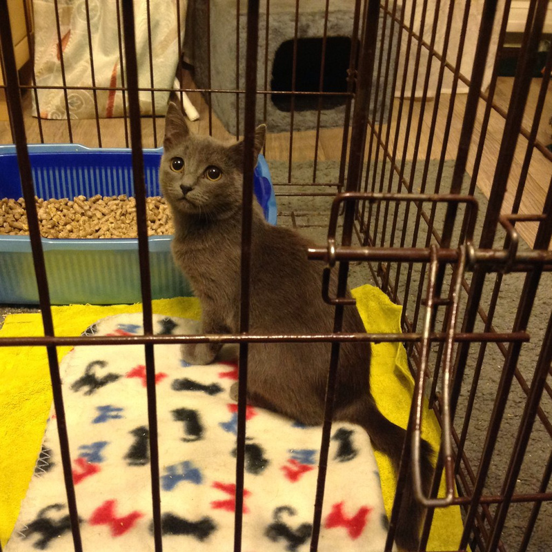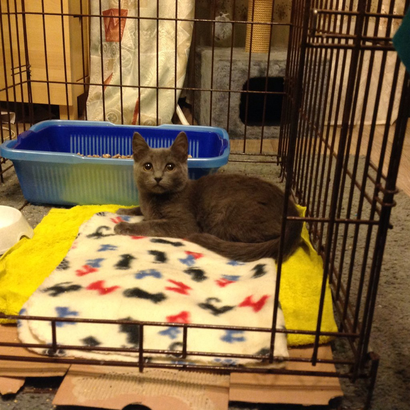 Обработан от паразитов, привит. Ест сухой корм для котят, ходит в лоток с древесным наполнителем.
