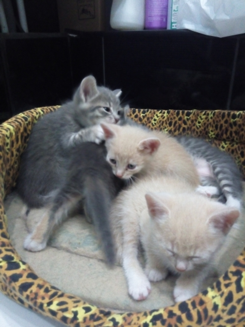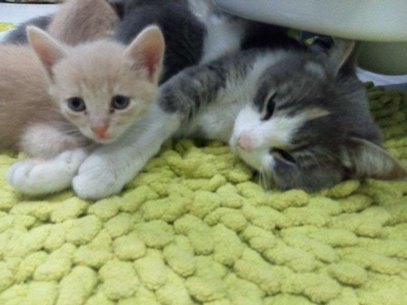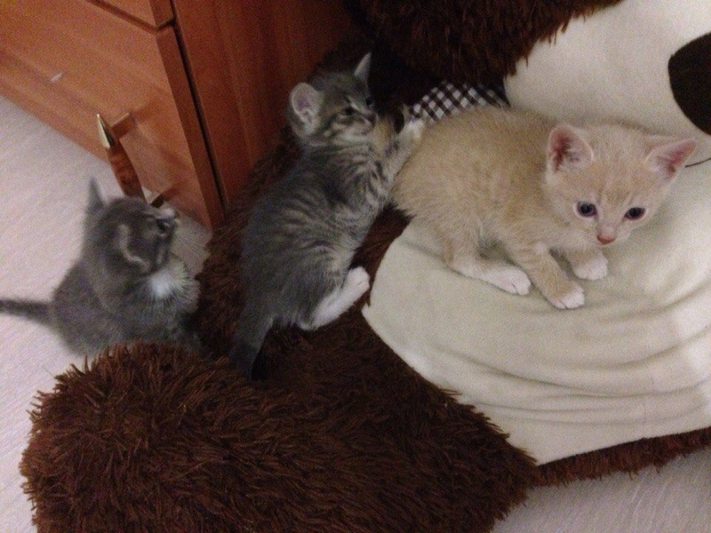 История у котят такова: соседская кошка родила миленьких умненьких котят. Соседи попросили меня их пристроить. Они относятся к животным как в деревне – бесполезные животные, должны не мешаться и есть, что дают. Ни какой ласки, заботы. Вчера терпение соседей иссякло и сосед разговаривая с моим мужем – сказал, что посадит котят в коробку и переедет их машиной. Муж не смог этого допустить и пошел забрал котят. Так ему еще в придачу отдали и кошку(маму котят).
