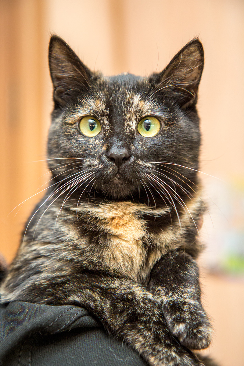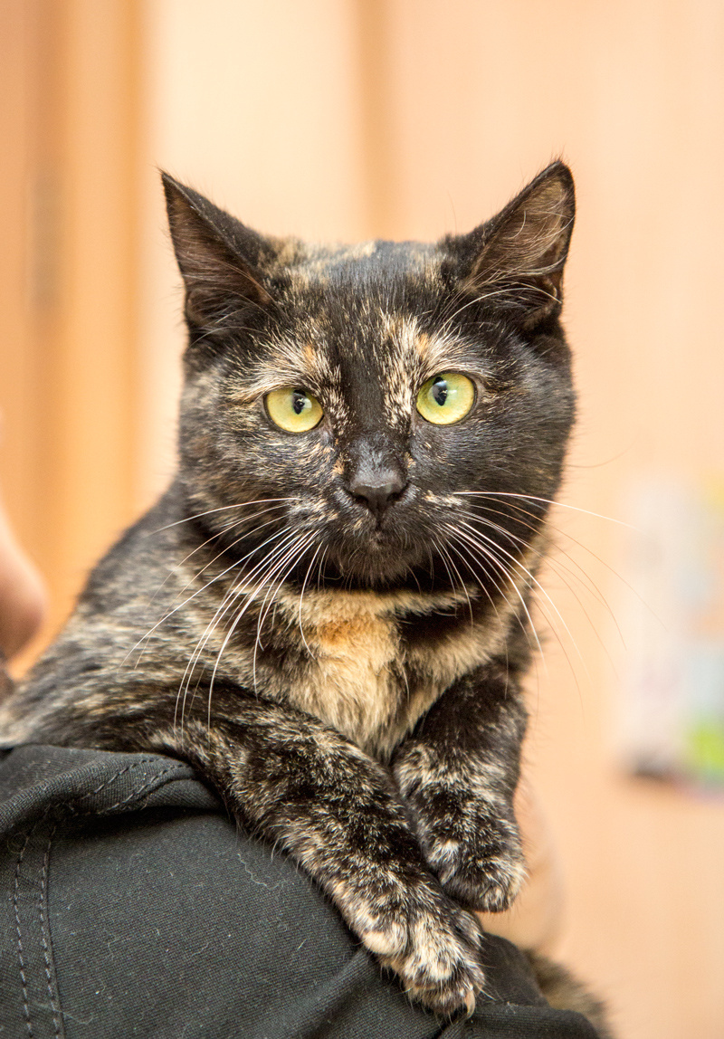 Стешенька, маленькая девочка, ей примерно 6-7 месяцев. Она умничка, отлично знает горшок, хорошо кушает, много играет, отлично ладит с другими кошками. Немного независима, но любит ласку. Стерилизована, глистогонена, обработана от блох. Шубка у Стеши набитая, шелковистая и очень приятная на ощупь. Стешенька очень смешная, похожа на Совушку, ростиком совсем не большая, компактная кошечка.