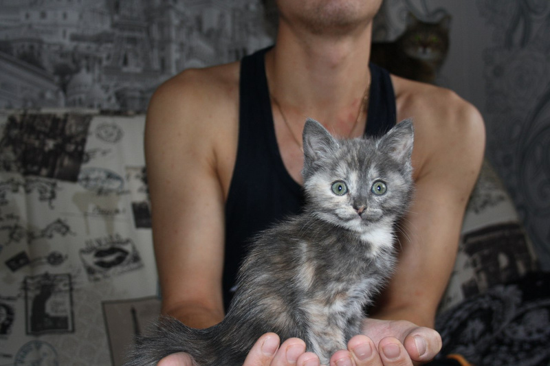 Девочка, 1 месяц, здорова, от глистов и блох обработана. Кушает все сама, ходит в лоток.