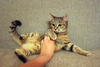 Его имя говорит само за себя, невероятно активный, игривый и самодостаточный. Ласку принимает за должное, несмотря на свой возраст (около 9-ти месяцев) ведет себя, как взрослый котяра. Мурчит, как дизельный трактор в деревне, жрать просит, как голодная корова в поле. Его пронзительное "Мяу" разбудит даже самого сонного (если сломался будильник, можно просто оставить ему минимум корма в миске, утром орать начнет так, что кроме вас проснутся даже соседи несколькими этажами выше). По квартире бегает молниеносно, можно пробовать посоревноваться с ним, но сразу же предупреждаю - не рассчитывайте на победу, он обгонит вас, а после еще и посмотрит презрительно. К кошкам относится спокойно, собак не боится, даже скорее собаки могут бояться его (он им еще покажет, кто хозяин в доме). Жрет все (не ест, а жрет), но если не будете кормить его сухим кормом супер-премиум класса, то может отомстить (а как он мстит лучше даже не знать). Лоток знает и готов всем показать, как им пользоваться, предпочитает древесный наполнитель (лучше советоваться с его мнением, иначе ботинки могут быть в опасности). Отдается только ответственным людям, которые понимают, что такой хулиган в доме - может натворить много дел.