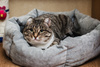 Кушает качественный сухой корм, ходит строго в лоток (с наполнителем). Стерилизована, привита.