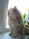 Кошечка ласковая, но деликатная, совершенно ненавязчивая. Ходит в лоток (предпочитает решетку без наполнителя), кушает хорошо, преимущественно сухой корм.