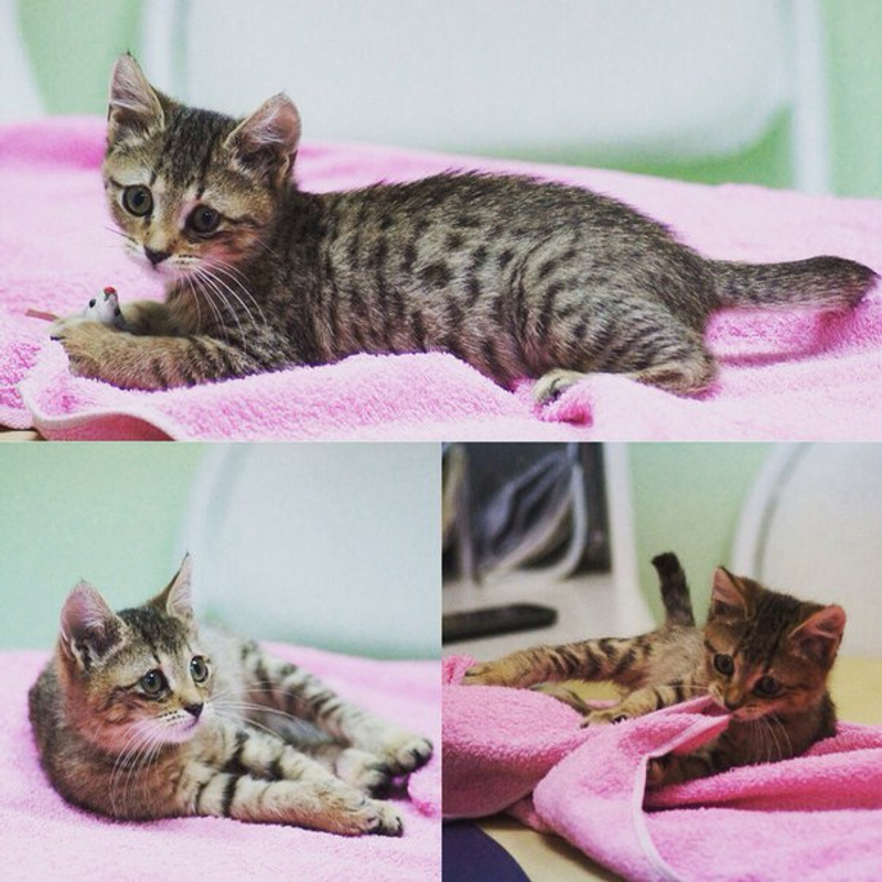 Девочка Соня – полосатая с рыжинкой, спокойная, милая, застенчивая кроха.