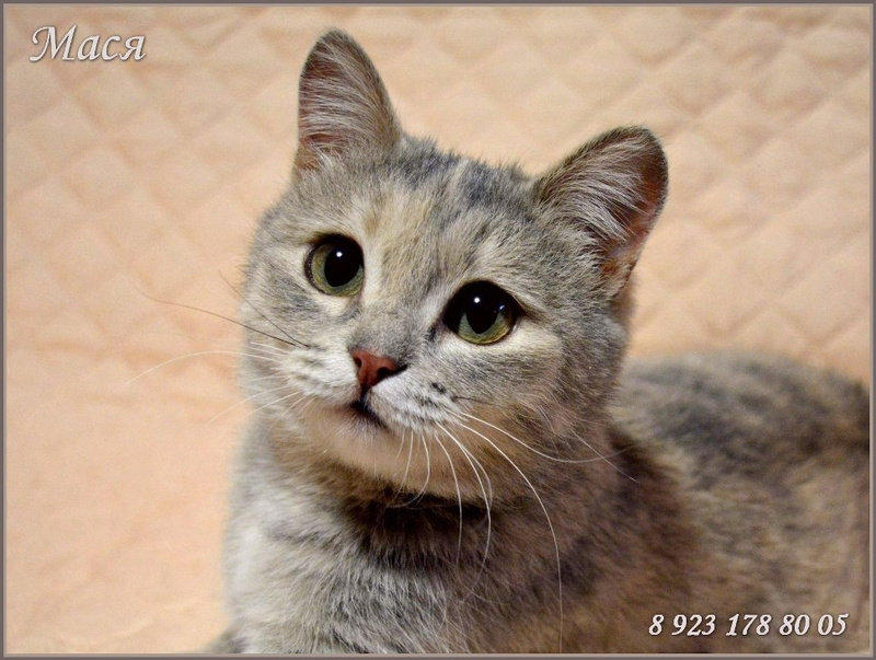 Мася молоденькая, жизнерадостная и очень красивая кошечка. Ласковая, мурчательная и игривая девочка. Без проблем впишется в семью и станет украшением Вашего дома. Девочка стерилизована, обработала от паразитов и готовится к первой прививке. К лотку и когтеточке приучена.