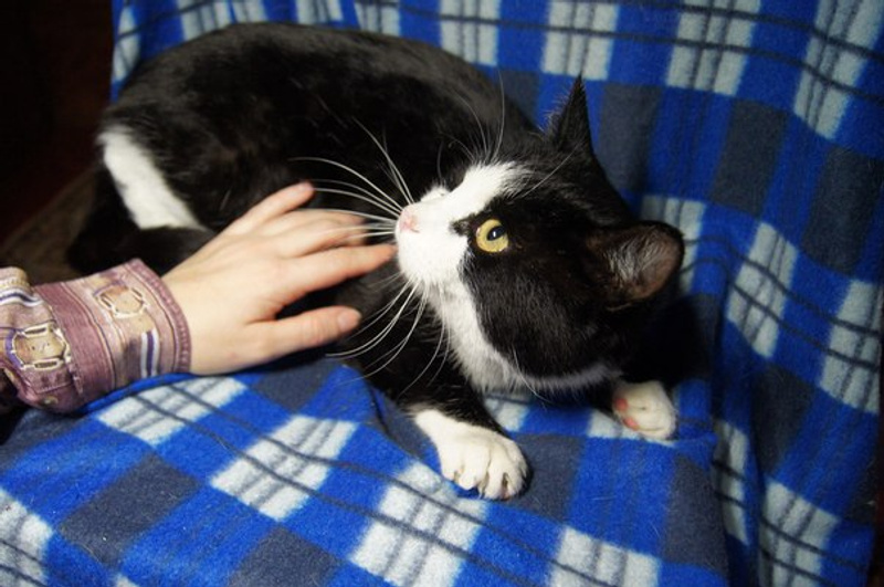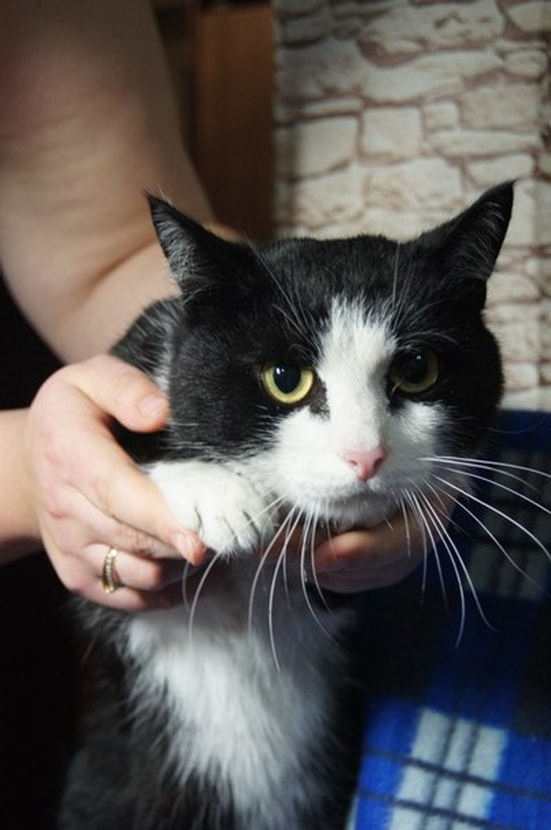 Отдадим в добрые руки большого чёрного кота с белым животом, мордочкой, лапками. Коту 3 года, всё это время жил в частном доме, умеет и любит ловить мышей, здоров, кастрирован, привит.