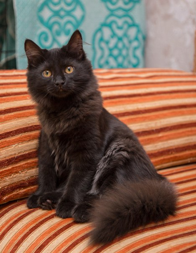 Девочке около 7 месяцев, грациозная, миниатюрная куколка с невероятно шикарной, пушистой шубкой и милейшей мордашкой. Девочка стерилизована, поставлена первая прививочка, воспитана, приучена к лоточку и когтеточке, очень веселая, игривая, ласковая и позитивная.