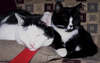 Прекрасно ходят в комкующийся наполнитель или силикагель. Уже прошли помывку, двойную обработку от глистов. В ближайшее время будет первая прививка. Стерилизованы – за это спасибо Елене Сергеевне, оплатившей обе операции.