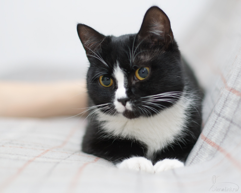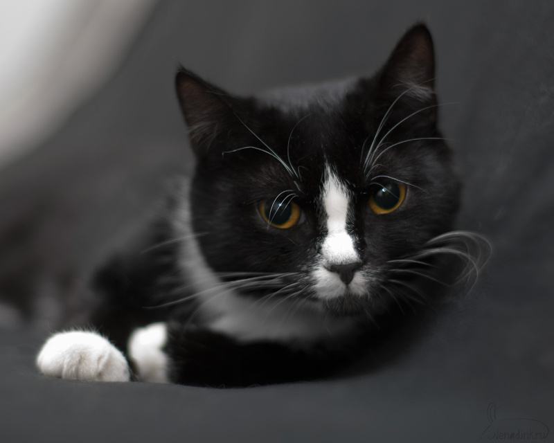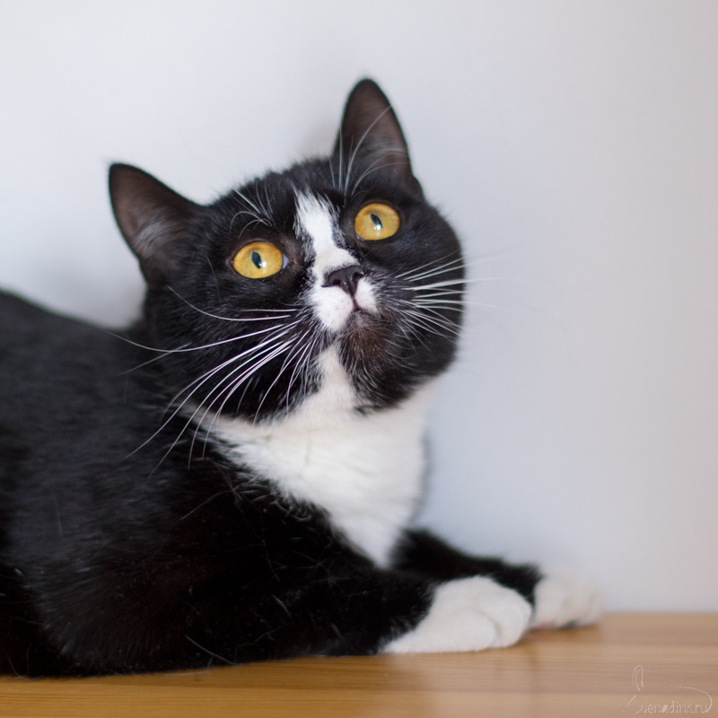 Матильда – очень необычный окрас (черный нос на белой переносице), гладкая длинноножка, с шелковой шерсткой. Отлично общается с хозяином, чужих людей сторонится (кошка-призрак).