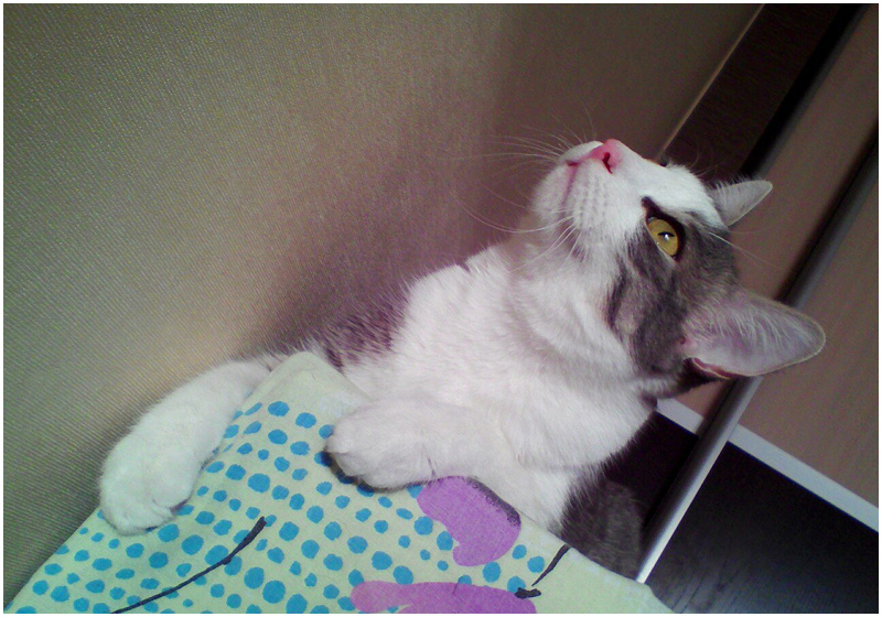 Котишка очень ласковый, любит спать на хозяйской подушке и самозабвенно ковыряться в волосах. Очаровательный малыш, невероятно ласковый и большой выбражулька)))