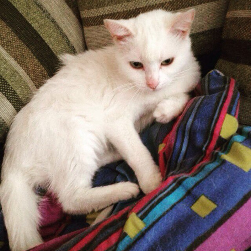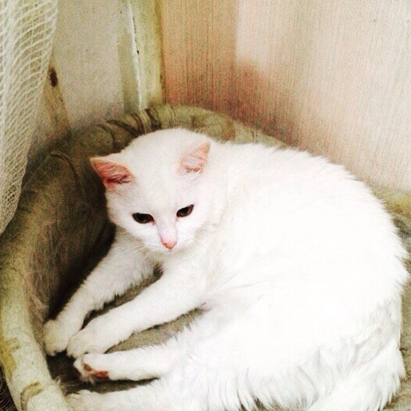 Потенциальные хозяева, знакомьтесь: Дина, молодая, ласковая, статная кошечка. Красивая белоснежная скромница, спокойная, немного пуглива. Возраст 2 с половиной года, полностью готова к переезду в новый дом: стерилизована, привита, приучена к лоточку.