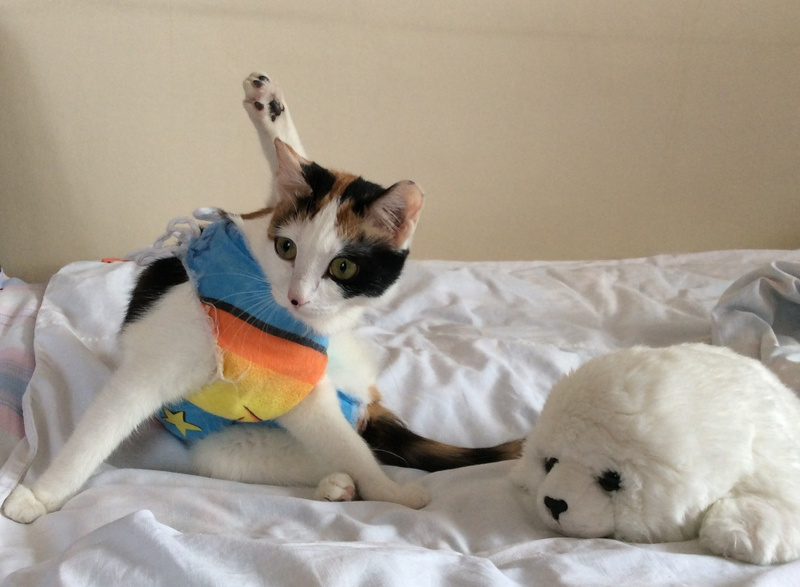Была условно домашняя - жила в подвале у дворников. Появилась подростком, достигла возраста 10 месяцев, стали захаживать самовыгульные и прочие коты - проверяли вероятно, скоро ли созреет. С разрешения дворника свозили девочку на стерилизацию. Спасибо Matylda за оплату этой нужной операции, когда на улицах переизбыток бездомных животных .