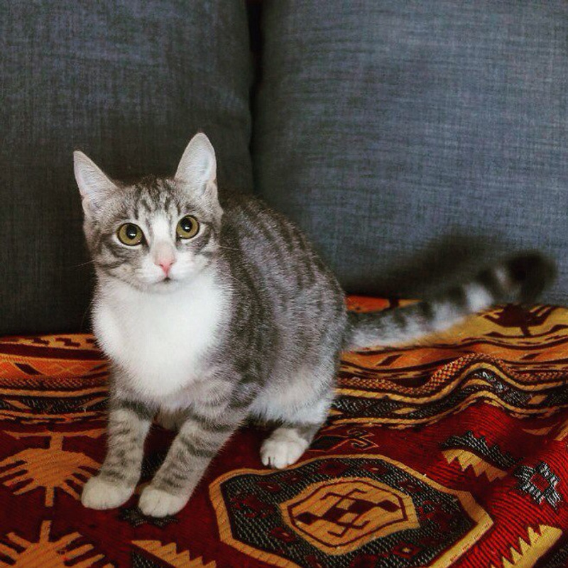 Ищет свой дом и любящих хозяев кото-девочка Пуговка с огромными любопытными глазами и красивым серебристым окрасом. Ей всего 6 месяцев, здорова, стерилизована, лоточек на отлично. Игривая, задорная и очень позитивная квартирная жительница. Не особо ручная, возможно, в силу возраста и активности, но расположена к человеку и дает себя и погладить, и подержать. Скорее всего, оказавшись единственной кошкой в доме любящего хозяина, она станет более ласковой. А пока обожает всевозможные игры с участием человека, особенно дразнилки-махалки. Впрочем, если вы заняты, Пуговка сможет развлечь себя сама. Неконфликтна, легко уживается с другими животными.