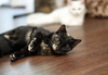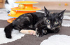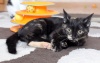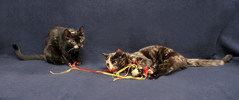 Румба легко втягивается во все кошачьи забавы, в игры, не прочь пошалить с сестричкой, поохотится на чайный пакетик, то уже будет рычать, показывает, что это ее добыча, даже не пробуй забрать))).