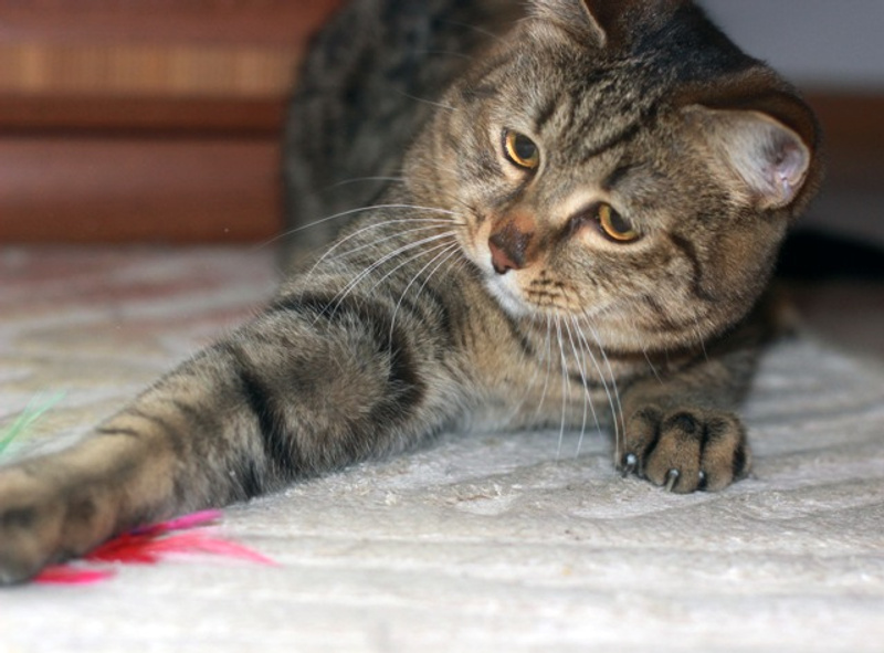 В ожидании хозяев...Мартин коротает время, как может.. Ответ на сообщение Re: Юный полосатый котик Мартин пользователя lara_mura