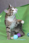 Юному Фениксу около 7-8 месяцев. За внешностью нежного ребенка с бездонными глазами скрывается по-настоящему мужской, сильный характер. Этот жизнелюбивый мальчишка, которому не досталось нормального детства, с больной лапкой каким-то чудом пережил зиму на улице и нападение крупной собаки. Сейчас всё на нём успешно зажило, правда, пришлось удалить хвост, но бобтейл – не самый плохой конец)) Феникс, несмотря на судьбу, добрый, общительный, контактный котенок. Он любит людей, любит мурлыкать и сидеть на ручках. При этом ненавязчив, когда Вы захотите – поиграет с вами, когда не захотите – поиграет без Вас. В настоящее время Феникс усердно возмещает всё то, что недодала ему жизнь, например, ест. Есть он готов без перерыва, есть Феникс всегда готов, за себя и за того брата)) Во всем остальном с братьями и сестрами уживется. Знает лоток. Избавлен от блох, паразитов, кастрирован!