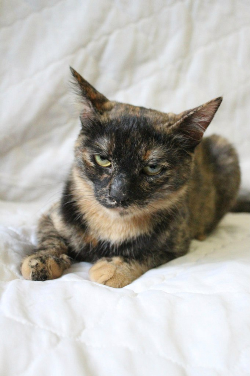 Замечательная девчонка, несмотря на свой возраст (3-4 года), выглядит, как маленький полугодовалый котёнок. Красивый черепаховый окрас делает ее внешность уникальной и неповторимой. Наша кисуня очень ласковая, весёлая, игривая. Способна устраивать забеги по квартире, вовлекая в свои гонки других кошек, детей и взрослых. Любит общение с человеком, готова мурчать без устали на ручках, подставляя под поглаживания умную головушку и другие части тела. Приучена к лоточку, никогда не промахивается)) Очень дружелюбная, найдет общий язык с вашим ребёнком. Не поцарапает и будет терпеливо переносить тисканья. Но, конечно же, в меру разумного. Отлично ладит с другими представителями кошачьего общества. Кушает сухой корм. Стерилизована.