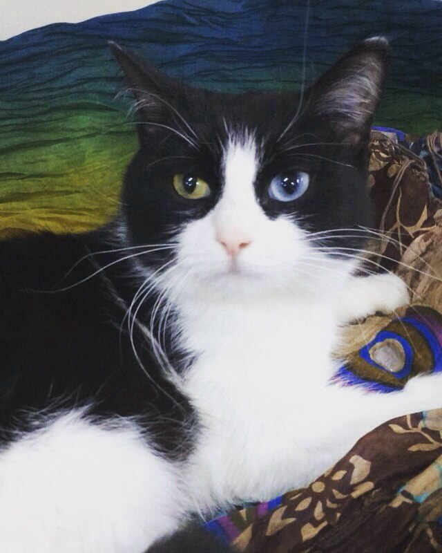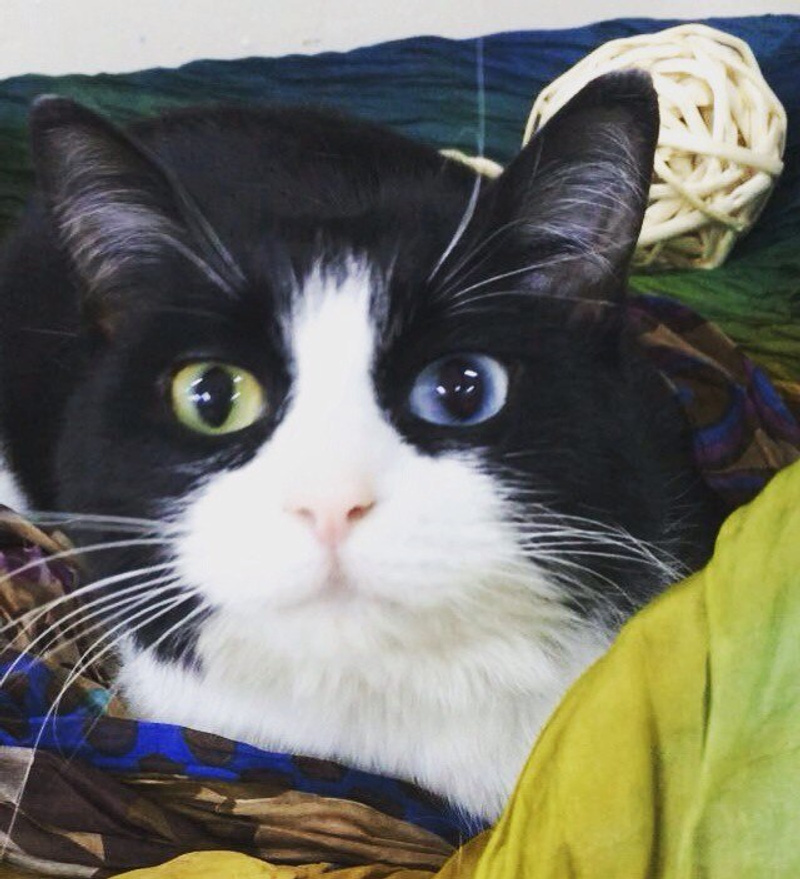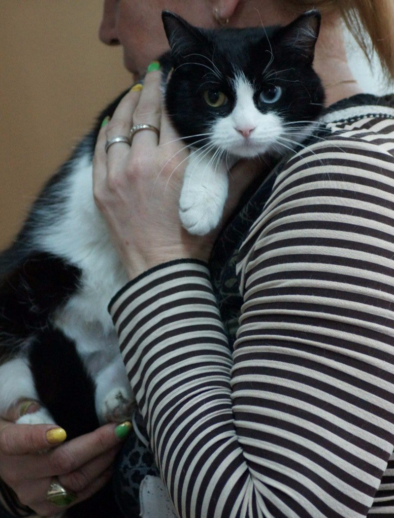 В жизни этой молоденькой кото-девочки (в ветклинике ей дали год, максимум полтора) буквально за несколько дней всё стремительно поменялось. Случайно выловленная из подвала, она оказалась чуть не на последних днях беременности и была в срочном порядке стерилизована. Кошка бывшедомашняя, чистая, без блох и ушных клещей. Не дикая и не агрессивная, позволяет себя гладить, идет на контакт с человеком, но пока немного напугана стремительно меняющимися обстоятельствами. Когда восстановится и приведет себя в порядок – будет редкой красоты барышня: разные по цвету глаза на контрасте со строгим биколорным окрасом придают ее облику абсолютную индивидуальность и неповторимый шарм. Лоток признала!