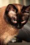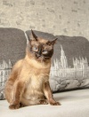 Таисия стерилизована, поставлены все прививки, получен паспорт. Отлично знает лоток, кушает сухой корм Раял Канин для сиамских пород. Когтеточкой владеет в совершенстве.
